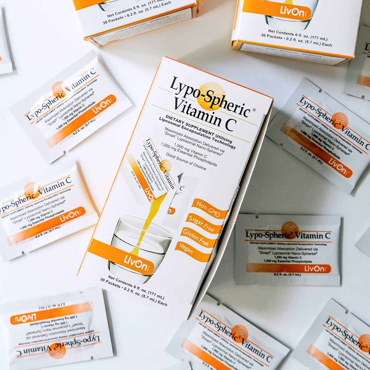 LivOn Laboratories Lypo-Spheric Liposomal Vitamin C1000mg -No Sugar, lmmune Support, Plant Based - Easyto Swallow,Absorbable-Non-GMO, Gluten Free(0.2 floz Individual 30 Packets)