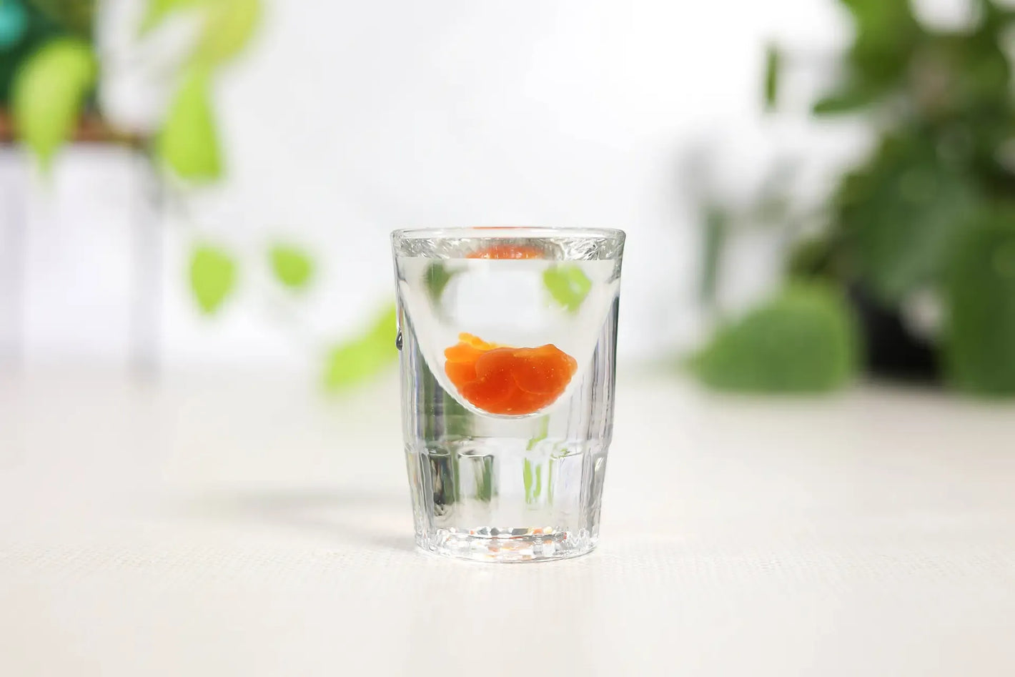 Please make sure that you are pouring your cool beverage into your shot glass BEFORE adding the supplement. If you squeeze the supplement in first, it will stick to the glass.